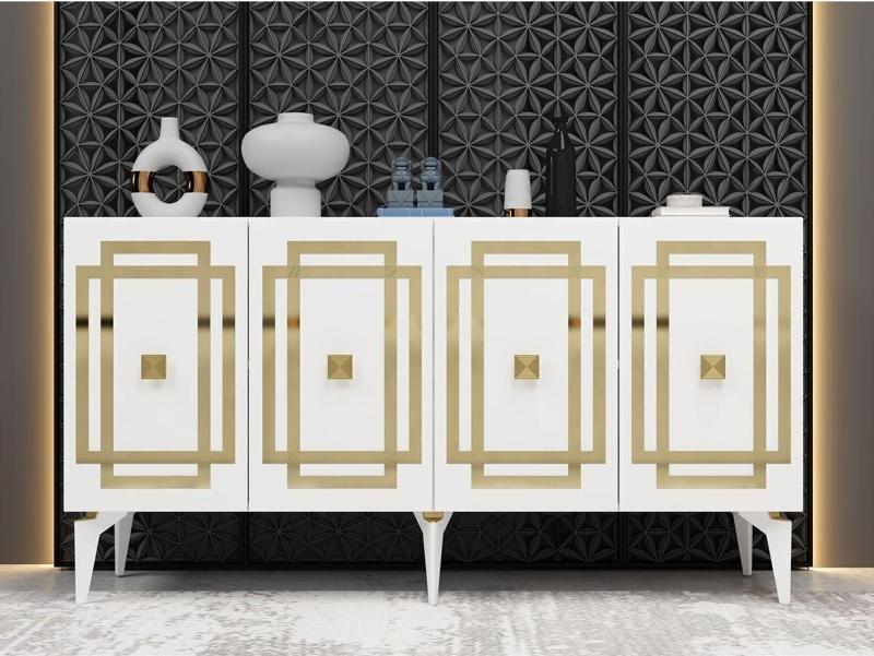 DEMONTE DECOR Lotus Konsol 4 Kapakli Rafli Konsol Beyaz Altin