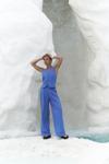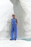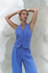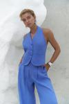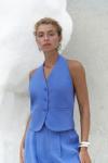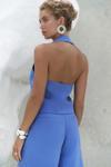 MAI STUDIOS CO. Dena Sırt Dekolteli Saks Mavi Keten Yelek Pantolon Takım