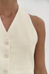 MAI STUDIOS CO. Dena Sırt Dekolteli Sarı Keten Yelek Pantolon Takım