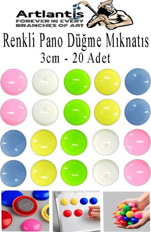 Artlantis Renkli Pano Düğme Mıknatısı 20 li 1 Paket Manyetik Yuvarlak Mıknatıs Buzdolabı Renkli Plastik Kaplı Dekarasyon Hobi Etki