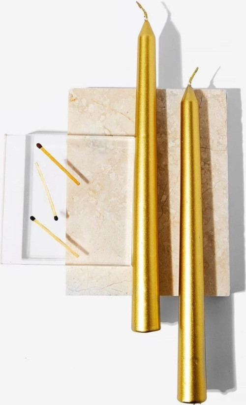 İki adet şık ve zarif tasarımıyla dikkat çeken metalik gold konik mum, dekoratif bir dokunuş katmak için idealdir.