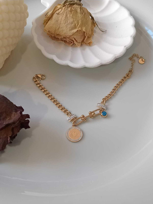 Ölcü: 40+5 cm Zirkon taşlı ve tuğralı Gold bileklik Zarif görünümü ve altinsi duruşu ile davetlerinizde göz kamastiracaktiR