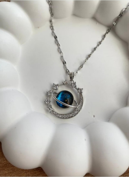 Yıldızlı Galaksi Çelik Kolye Gümüş Renk 40+5 CM ZINCIR