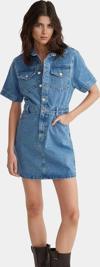 PayBuy Denim Gömlek Elbise Kısa Kollu Midi Boy Pamuk Casual Mükemmel Uyum Konforlu Kesim Seçkin Malzeme