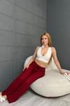 - Bordo rengin asaletini yansıtan dokulu pike pantolon, şıklığı ve rahatlığı bir arada sunar.