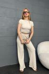 - Taş rengiyle şıklığı ve zarafeti bir arada sunan pike kumaştan üretilmiş ikili takım, her mevsim rahatlıkla tercih edilebilir.
