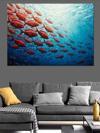 Karizmart Deniz Altında Balık Sürüsü Dekoratif Kanvas - Mdf Ahşap Tablo