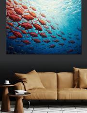 Deniz Altında Balık Sürüsü Dekoratif Kanvas - Mdf Ahşap Tablo