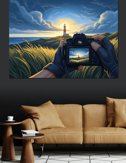 Karizmart Deniz Feneri Manzarası Çeken Kamare Tutan Eller Dekoratif Kanvas - Mdf Ahşap Tablo