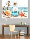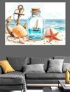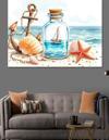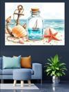 Deniz Kabuğu Ve Şişe Dekoratif Kanvas - Mdf Ahşap Tablo