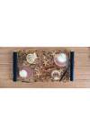 - Boyut ve Kullanım: Yaklaşık 17x25 cm boyutlarındaki bu tepsi, kahve fincanları, takılar, parfümler veya mumlar için ideal bir sergileme ve sunum alanı sunar.