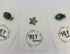 - El yapımı üçlü seramik charm seti; iki balık ve bir denizyıldızı figüründen oluşur.