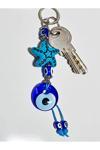 Deniz Yıldızlı Cam Nazar Boncuklu Anahtarlık – Zarif ve Koruyucu Tasarım