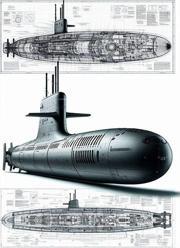 Denizaltı Çizim Şeması Modern Ahşap Tablo 50cmX 70cm