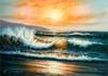 Denizde Gün Batımı Yağlı Boya Dokulu Tablo 50X70 Gümüş Çerçeveli