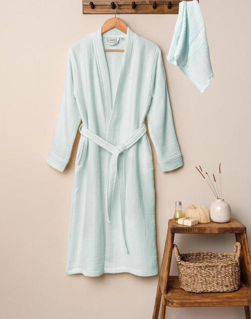 Mint Yeşili Unisex Kimono Müslin Bornoz Ve Havlu Seti - Şık Ve Dayanıklı Bornoz Seti Modelleri