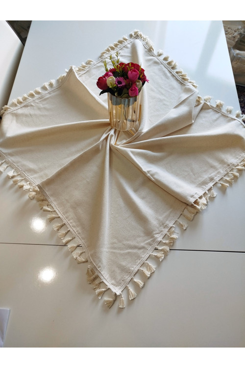 Denizli Hatırası markasının %100 pamuklu doğal keten kumaşından üretilen bu ürün, zarif püskül detaylarıyla dikkat çeker.