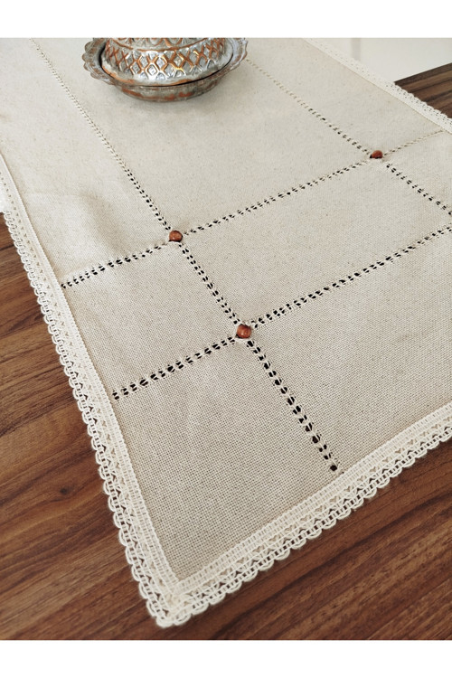 - 100x45 cm boyutlarındaki bu runner, hem geniş masalarınızda hem de daha küçük sofra düzenlerinizde ideal bir tamamlayıcıdır.