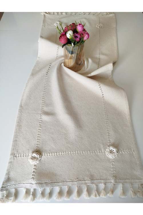 - El işçiliği ile özenle tasarlanmış, antika nakış detaylarıyla süslenmiş bu runner, otantik bir dokunuş sunar.