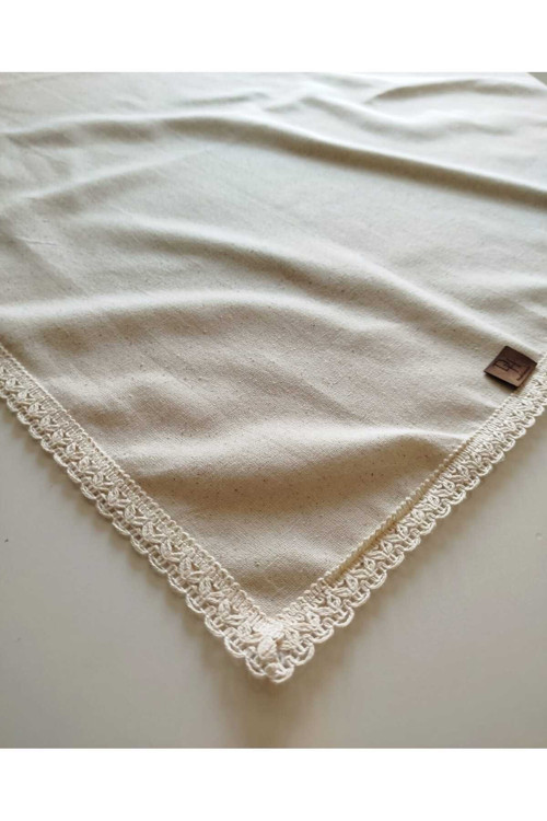 Organik Keten Pamuklu Yumuşaçık Kolay Ütü Krem Güpürlü Masa Örtüsü