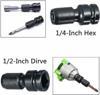 Size iki farklı araç veren 1/2 "darbe anahtarı bir 1/4" hex shank sürücü hızlı yük bit sistemi değiştirir
