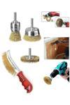 3 Parçalı Pimli çelik Tel Fırça Seti sap çapı :6mm sap uzunluğu : 35mm çanaklar : 25mm - 40mm daire fırça: 50mm + Saplı telfırça