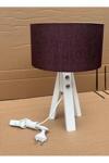 Abajur Komidin üstü masa üstü abajur lamba Kumaşlı 3 ayaklı Mor