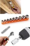 Depolife Cırcır Kollu 9 Parçalı Lokma Seti Ve Matkap Adaptörü 1/4 Soket Lokma Takımı Cır Cır Anahtar Kolu