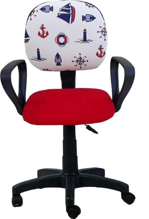 Çocukların ilgisini çekecek gemici dümen desenleriyle donatılmış bu sandalye, çalışma saatlerini daha keyifli hale getirir