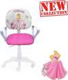 Depolife Çocuk Odası Ders Çalışma Ofis Koltuğu Öğrenci Sandalyesi Prenses Desen Beyaz Tekerli Yükseklik Ayarı