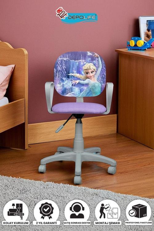 Depolife Çocuk Odası Sandalyesi Ders Çalışma Ofis Koltuğu Öğrenci Sandalye Beyaz Tekerli Yükseklik Ayarlı