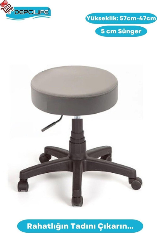 Depolife Döner Ofis Kasiyer Taburesi Tekerlekli Deri Döşeme Oturak Eczane Laboratuvar Büro Çalışma Koltuğu