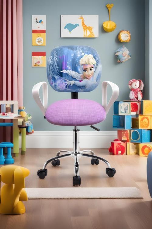 Depolife Frozen Ofis Ders Çalışma Faliyet Koltuğu Karlar Ülkesi Çocuk Odası Sandalyesi Döner Yükseklik Ayarlı