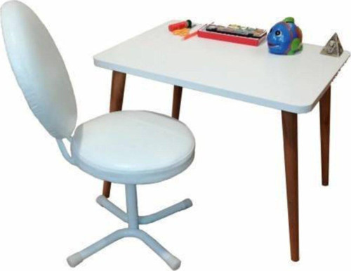 Depolife Ilk Ofisim Çocuk Ders Çalışma Masası Takımı Döner Koltuk Ahşap Ayak Masa Sandalye Masa Seti Beyaz