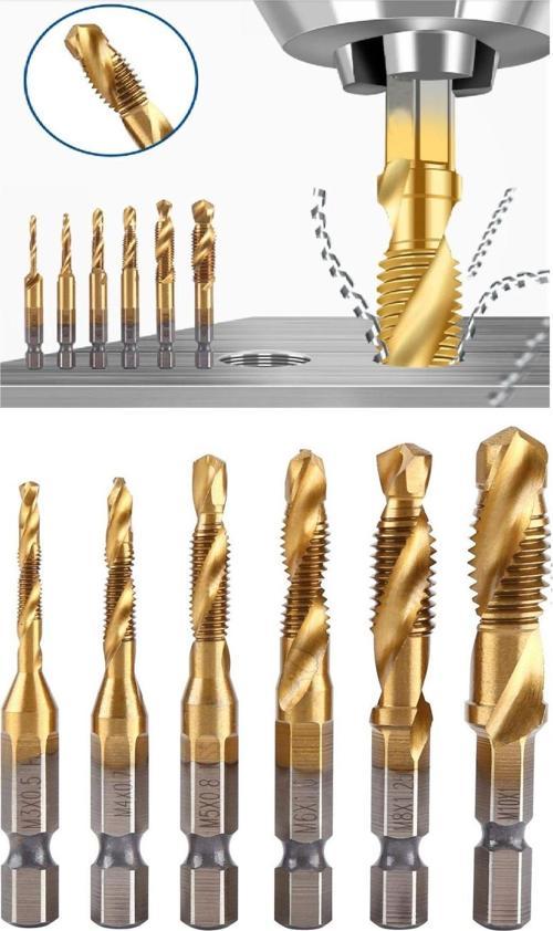 Depolife Klavuz Seti 1/4 Bıts Kendinden Matkap Uçlu M3 M4 M5 M6 M8 M10 Titanyum Ahşap Metal Matkap Uçlu