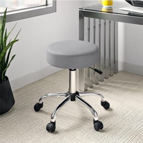 Depolife Ofis Kasiyer Taburesi 360 Derece Döner Deri Döşeme Oturak Eczane Laboratuvar Için Metal Ayaklı Gri