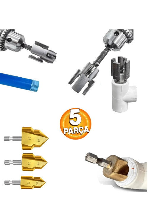 Tesisatcı PPRC boru için 2 Parçalı Tamir /Montaj Seti : (1/2" PPrc Boru Pafta Diş Açma Seti (iç ve dış) Yarım Parmak ve matkap Adaptörü ) ve 3/4" PPrc Boru Pafta Diş Açma Seti (iç ve dış)üç çeyrek ve matkap Adaptörü