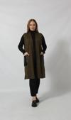 Y2403 DERİ CEP DETAYLI UZUN TRİKO YELEK Bu şık ve modern Deri Cep Detaylı Uzun Triko Yelek, gardırobunuza ekstra bir stil katmak için mükemmel bir seçenektir.