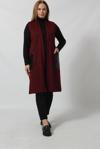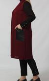 Moda Berray Deri Cep Detaylı Uzun Triko Yelek