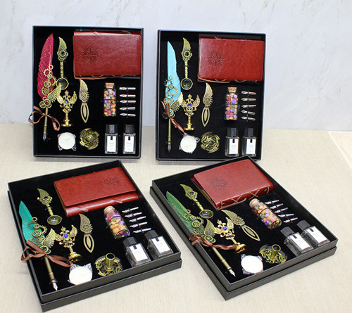 DERİ DEFTERLİ DİVİT HOKKA VE MÜHÜR SETİ MODEL 1