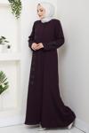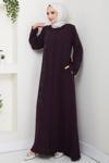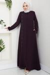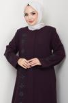 Deri İşlemeli Ferace Mürdüm HM2849 Özellikleri