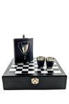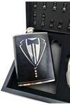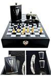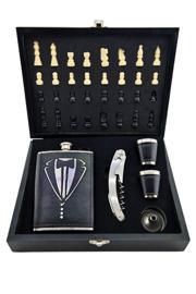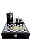 Kesene Deri Kaplamalı Çelik Matara ve Çakı Hediye Seti 4 Shot Bardak Özel Ahşap Kutusunda Satranç Takımı