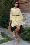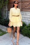 Zarif tasarımıyla dikkat çeken sarı renkteki bu elbise, günlük kullanım için idealdir.