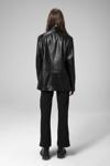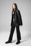* Şıklığın deriyle birleşmiş hali olan oversize kalıbıyla kadın blazer, klasik tarzıyla dikkat çekiyor. Düğmeli tasarımı , kullanılabilir kapaklı yan cepleri ve yaka tasarımı ile beraber şık görünümünü tamamlamakta. Kalıbıyla ayrı bir hava yakalayan bu model dolabınızda bulunması gereken deri montlarımızdan bir tanesi.