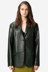 Bloom Kadın Oversize Düğmeli Hakiki Deri Blazer Ceket YEŞİL