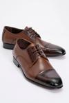 Dericlub Erkek Bağcıklı Comfort İşlemeli Klasik Ayakkabı Gerçek Deri BR 33278 TABA