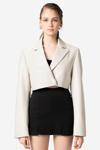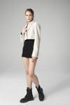 * Kendine özgün tarzıyla crop blazer model, tasarımıyla dikkat çekerken yakaya konumlandırılan cep tasarımıyla hareket sağlanmıştır. Yalın ve iddialı çizgisiyle her ortamda kendini belli edecek modeller arasında. Şık ve cool.