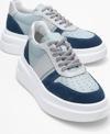 DERİCLUB Kadın Kalın Tabanlı Bağcıklı Casual Sneaker Gerçek Deri CR 2554 KOT MAVİ