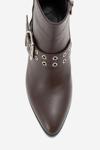 Şıklığı ve konforu bir arada sunan modern çizgili topuklu bot.