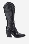 DERİCLUB Kadın Yüksek Topuk Sivri Burun Çizme Gerçek Deri ZY 1608 SİYAH